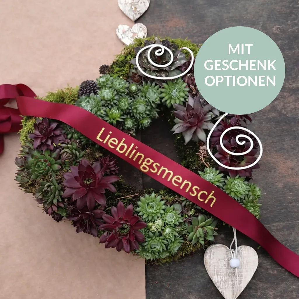 Sichere dir jetzt schon das exklusive und handgemachten Sukkulentenherz als Pflanzengruß für deine Mutter.