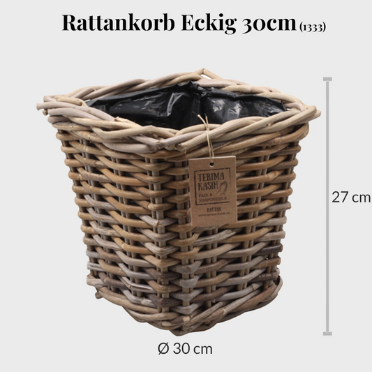 Rattankorb Eckig mit Griff 32cm mit Erde