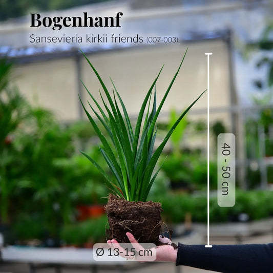 Möchtest du dir einen lustigen Bogenhanf bestellen, dann empfehlen wir dir die Sansevieria kirkii. Ihre Blätter sind recht schmal und nach außen gebogen. Diese Sansevieria bestellen sich Leute besonders fürs Büro oder auch als Fenterbank-Deko, denn wirklich groß ist sie nicht, aber dafür besonders.