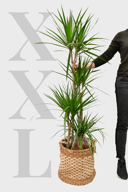 Große Dracaena: Den Drachenbaum gibt es in vielen verscheiden Blattformen und Farben. Eine große Zimmergrünpflanze, die mit 1-3 Stämmen gewachsen ist. Eine robuste Zimmerpflanze, die sich in vielen Wohnzimmern und Büros zu Hause fühlt.