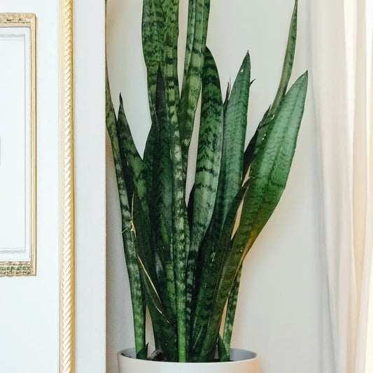 Eine besonders gute luftreinigende Pflanze fürs Schlafzimmer, die es auch mit wenig Licht aufnimmt, ist der Bogenhanf alias Sansevieria. Diese Sukkulente kann fast alles: Sie kommt mit wenig Licht aus, kann aber auch am Fenster direkte Sonne abbekommen und macht auch kein Theater, wenn es mal kalt ist oder zieht. Ein wahrer Schlafzimmerheld.