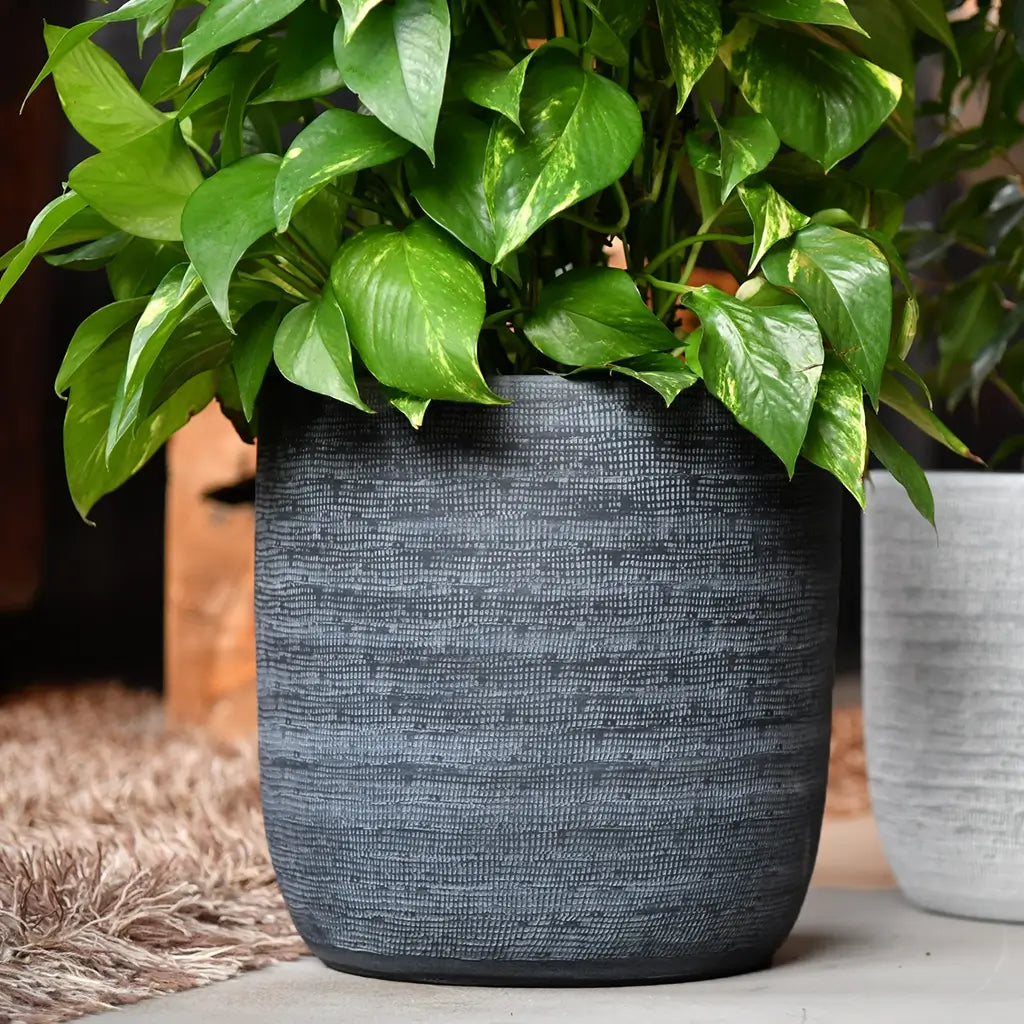 Ob mit Struktur oder in klassischem anthrazit oder weiß. Wähle deinen in Europa gefertigten Keramiktopf passend zu deiner Einrichtung.