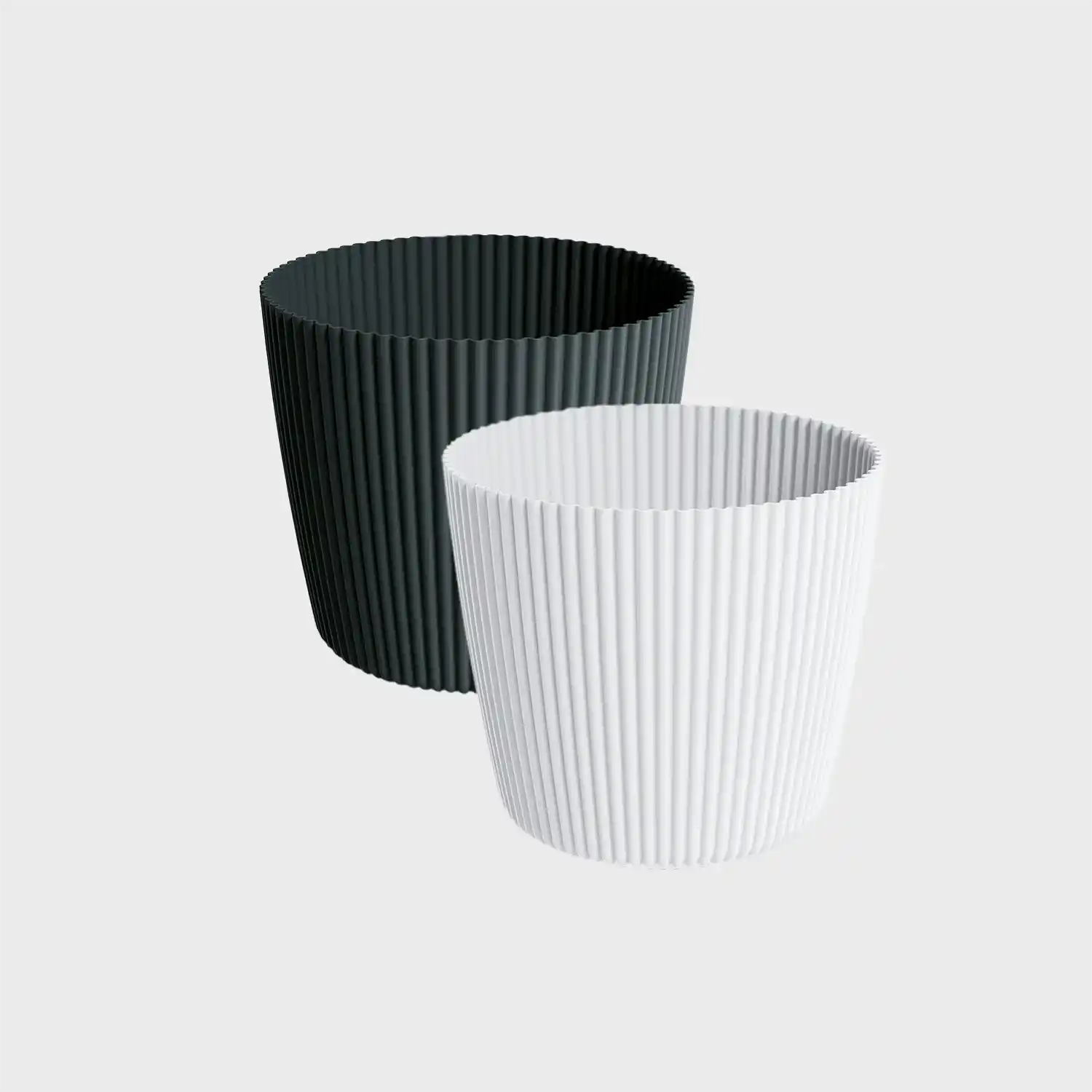 Dieses trendige Übertopf-Set passt perfekt zur 2er Pflanzenbox mit zwei kleinen Pflanzen. Der moderne Übertopf mit der gerillten Oberfläche ist simpel, aber sehr passend zu jeder Deko. Eintönige Deko ist nicht dein Ding? Wie Ying und Yang bilden die beiden Farben einen aufregenden Kontrast.