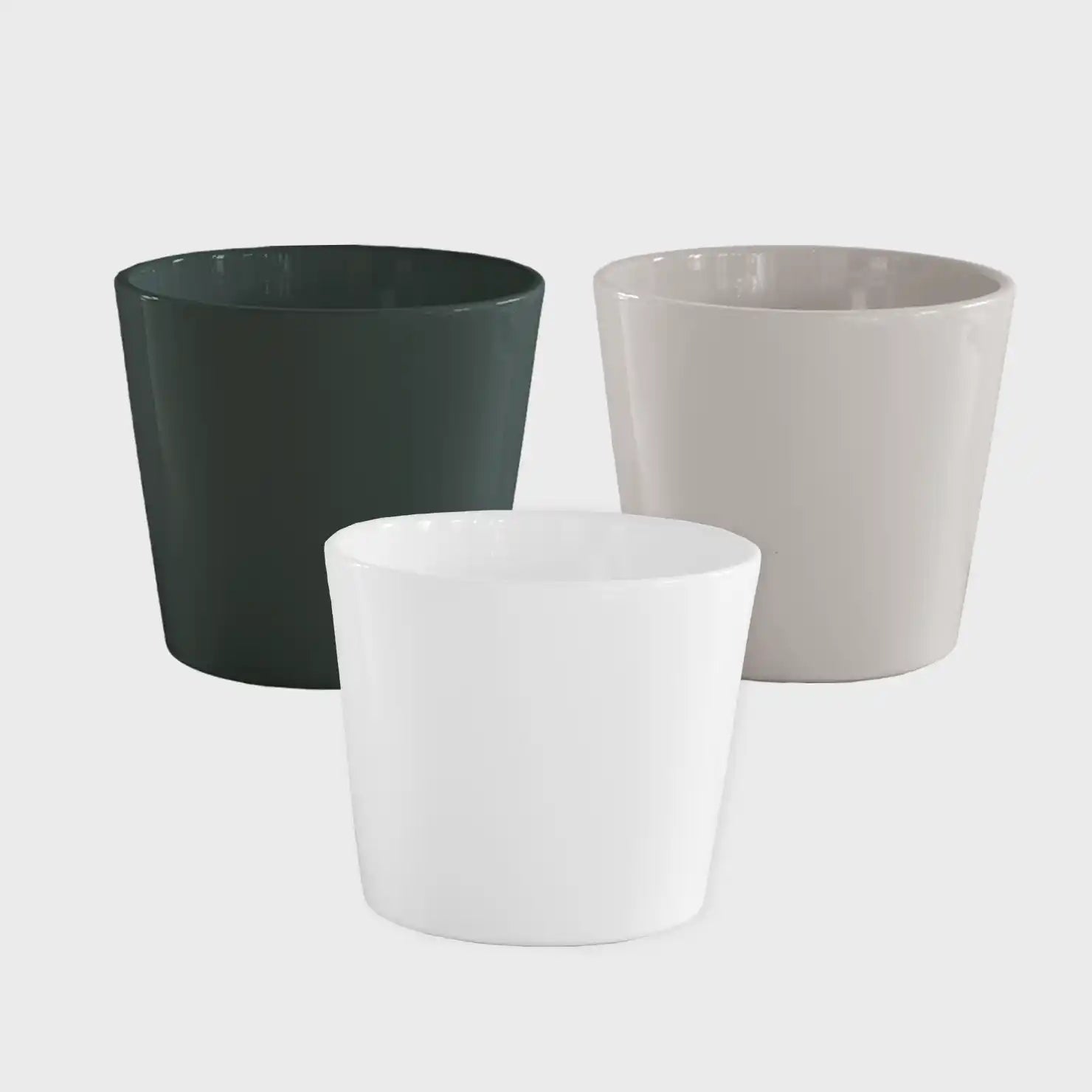"Schlicht, aber modern" beschreibt den neuen Keramiktopf Tara. Übertöpfe aus Keramik gelten als nachhaltige Variante zu Töpfen aus Materialien wie Kunststoff, da das Rohmaterial langlebig und natürlich ist. Mit dem Keramiktopf Tara kaufst du einen langen, treuen Begleiter für deine Pflanze, der 100% wasserdicht und damit für Hydrokulturpflanzen geeignet ist. Das 3er-Set setzt dein Pflanzenset perfekt in Szene.