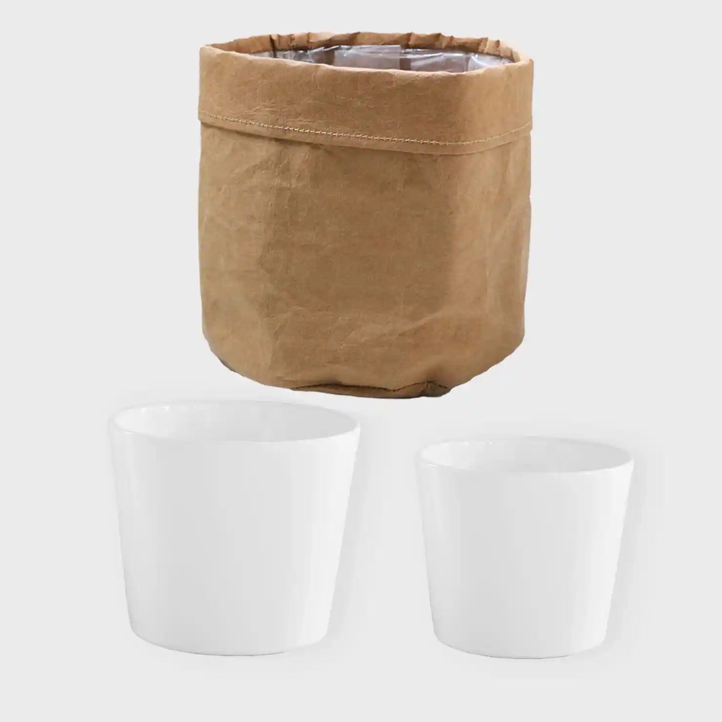 3er Übertopfset 1L 1M 1S Weiß-Natur