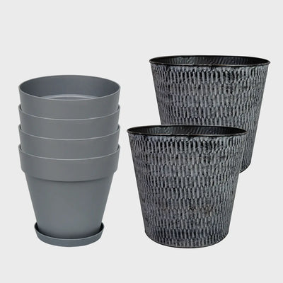 6er Übertopfset 1L 1M 4S Modern Dunkel Grau