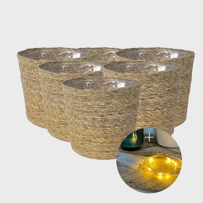 6er Übertopfset 6S Seegraskorb mit Lichterketten 10LED