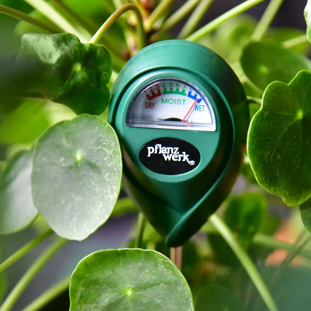 Der Feuchtigkeitsmesser ermittelt schnell und präzise den aktuellen Feuchtigkeitsgehalt der Erde und verhindert somit zuverlässig Über- und Unterwässerung.