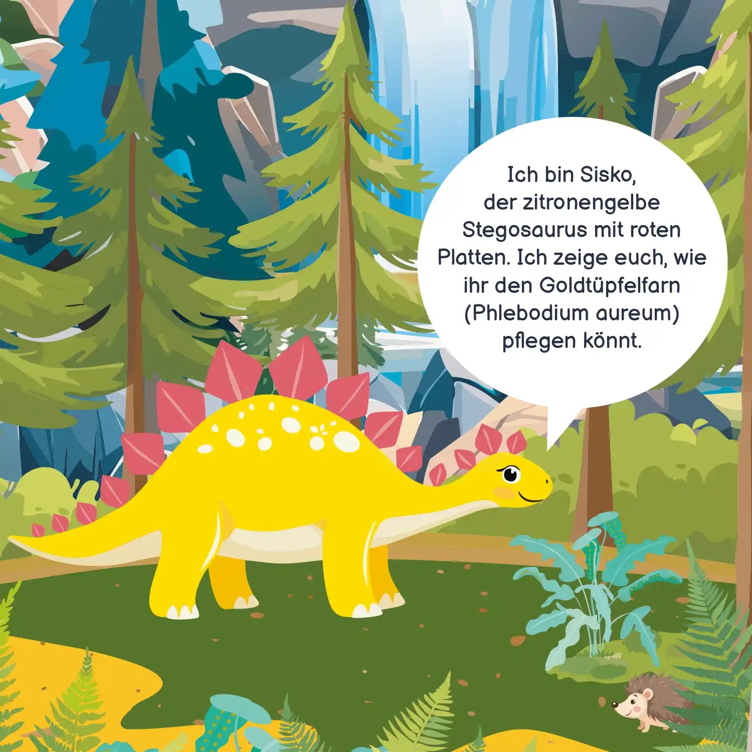 Mit deiner DINO SNACK® Pflanze Phlebodium aureum bekommst du kindgerechte Pflegeinformationen und spannende Fakten über Sisko, den Stegosaurus. Falls kleine Kinder im Haus sind, die auch schon mal an der Pflanzen knabbern, empfehlen wir auf die Goldtüpfelfarn zu verzichten. Sie gilt als leicht giftig.