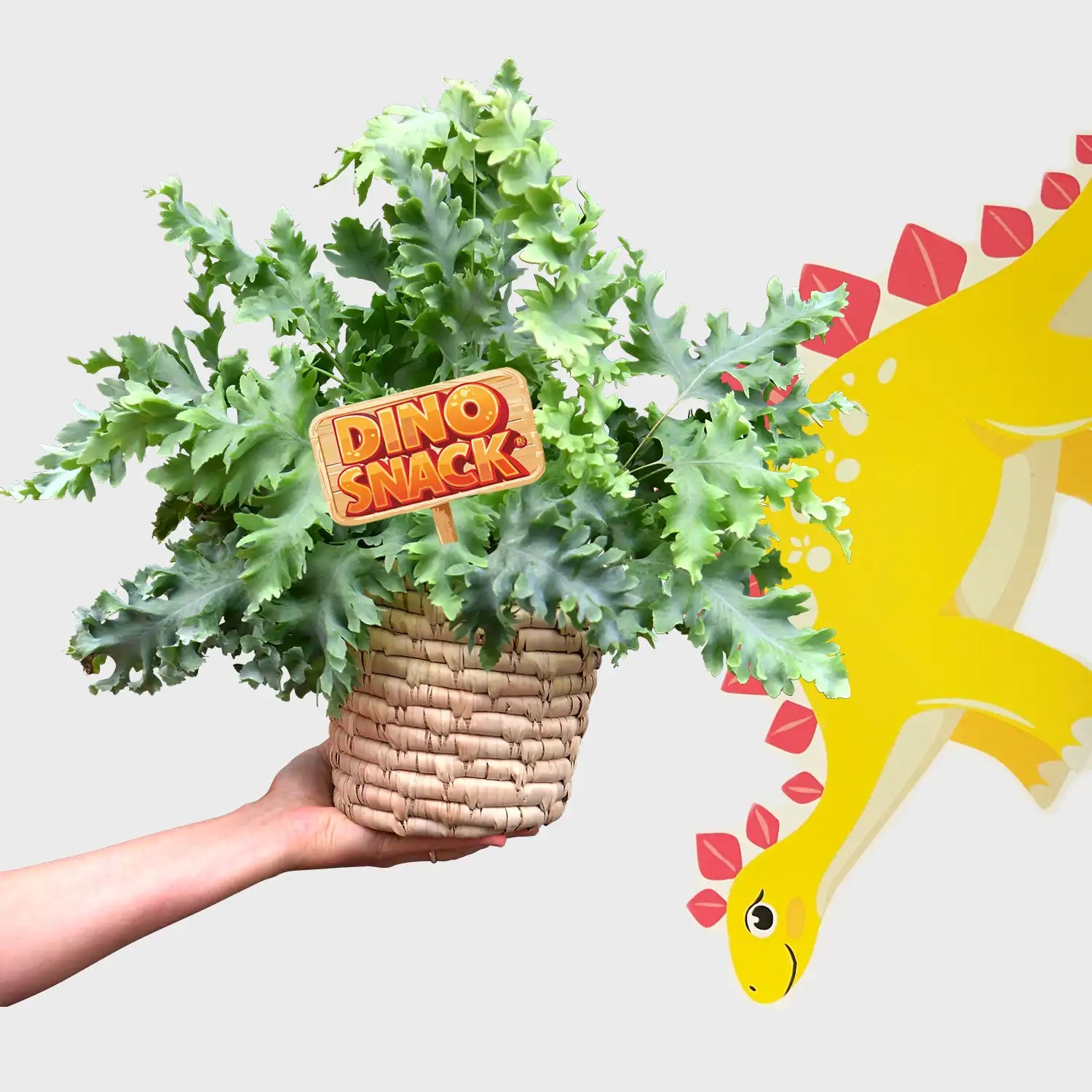 Sisko der Stegosaurus und der Farn Phlebodium aureum sind ein starkes und pflegeleichtes Team. Die Dino Snack® Pflanze macht deine Spielewelt zu einem Dino Dschungel. Mit der Pflanze bekommst du die Sisko Sammelkarte mit allen Infos zum Dinosaurier, einen Vulkan zum selber basteln und eine spannende Audiogeschichte über deinen Dino und sein Lieblingspflanze zum Runterladen.