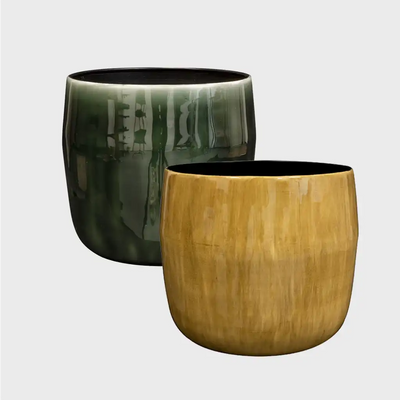 Glänzende Optik auf leichtem Metall - Dieser Topf sieht aus, als wäre er aus massivstem Stein gefertigt, ist aber super leicht und sehr hochwertig. Jedes Stück ist von Hand gefertigt und ein damit einzigartig. Die dunkelgrüne Farbe passt in jeden Einrichtungsstil und wertet deine Pflanze und den Raum auf. Das Camel-Farbe hingegen ist eher hell und passt perfekt in jede moderne Einrichtung.