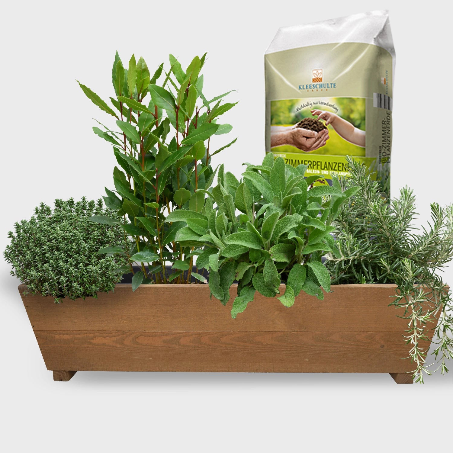 Holzbalkonkasten Set winterharte Küchenkräuter