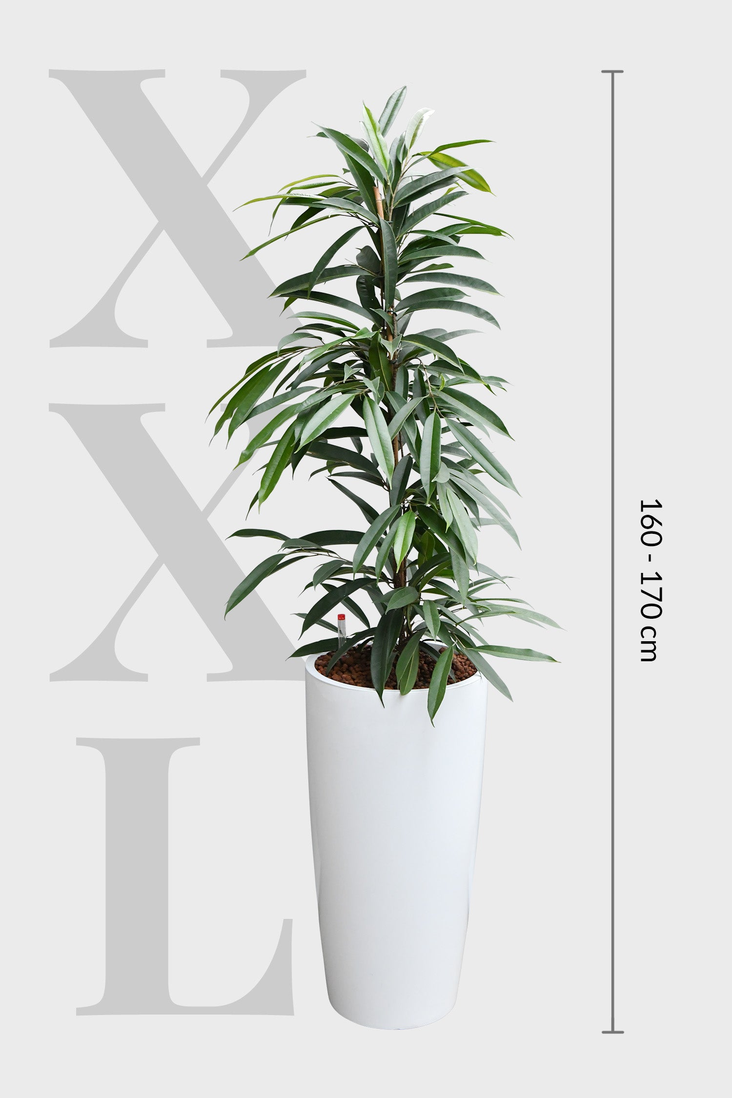 Mit dieser Kombination aus einem großen Ficus Amstel King in Hydrokultur und dem hohen Pflanzgefäß, kannst du in deinem Büro eine langlebige und professionelle Begrünung zaubern. Der Feigenbaum als Büroklassiker bringt schnell frisches Raumklima in deine Arbeitsumgebung und reinigt dazu noch Schadstoffe aus der Luft.