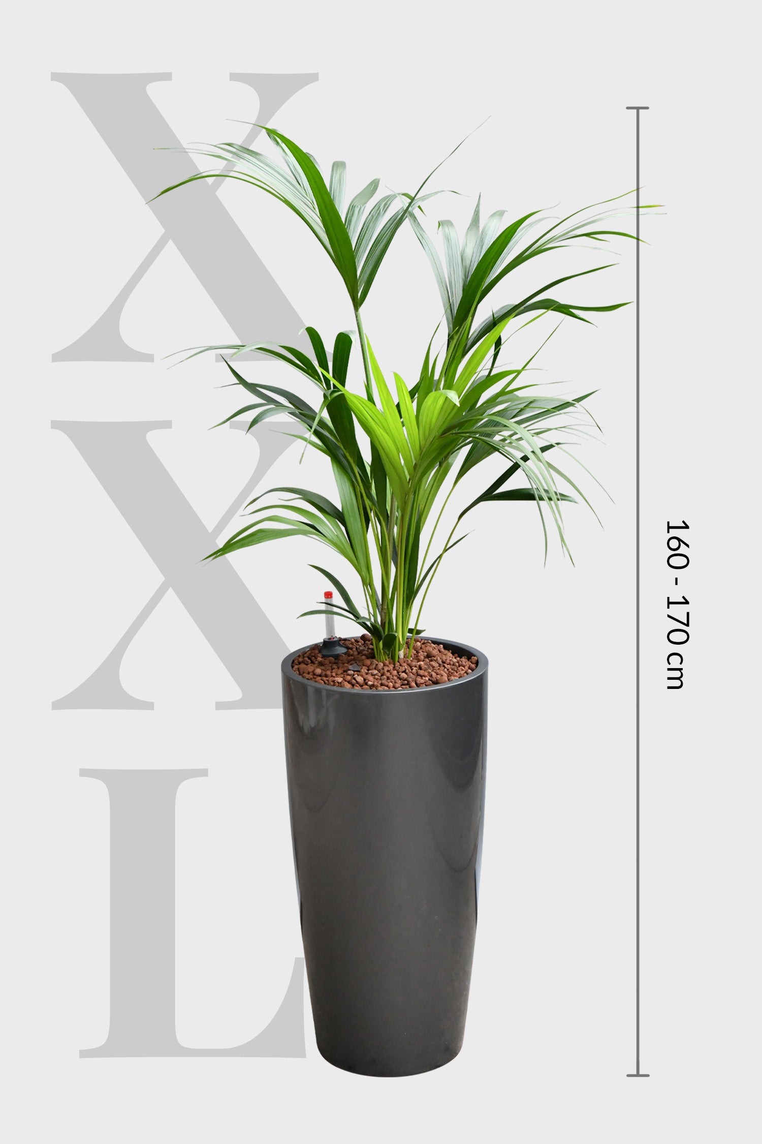 Mit dieser Kombination aus einer großen Kentia Palme in Hydrokultur und dem hohen Pflanzgefäß, kannst du in deinem Büro eine langlebige und professionelle Begrünung zaubern. Die große, pflegeleichte Palme bringt schnell frisches Raumklima in deine Arbeitsumgebung und ist dazu luftreinigend und ungiftig für Tiere.
