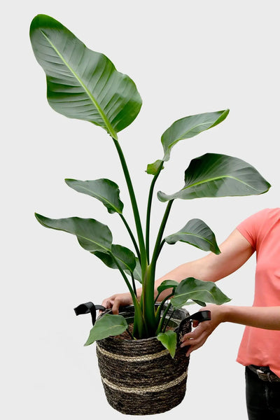 Die Strelitzie macht deinen Raum zu einer Wohlfühloase und ist dabei sehr pflegeleicht. Mit den schönen großen Blättern und ihren langen Blattstilen ist sie perfekt für die moderne Raumdeko zu Hause oder in Studios und Praxen geeignet.