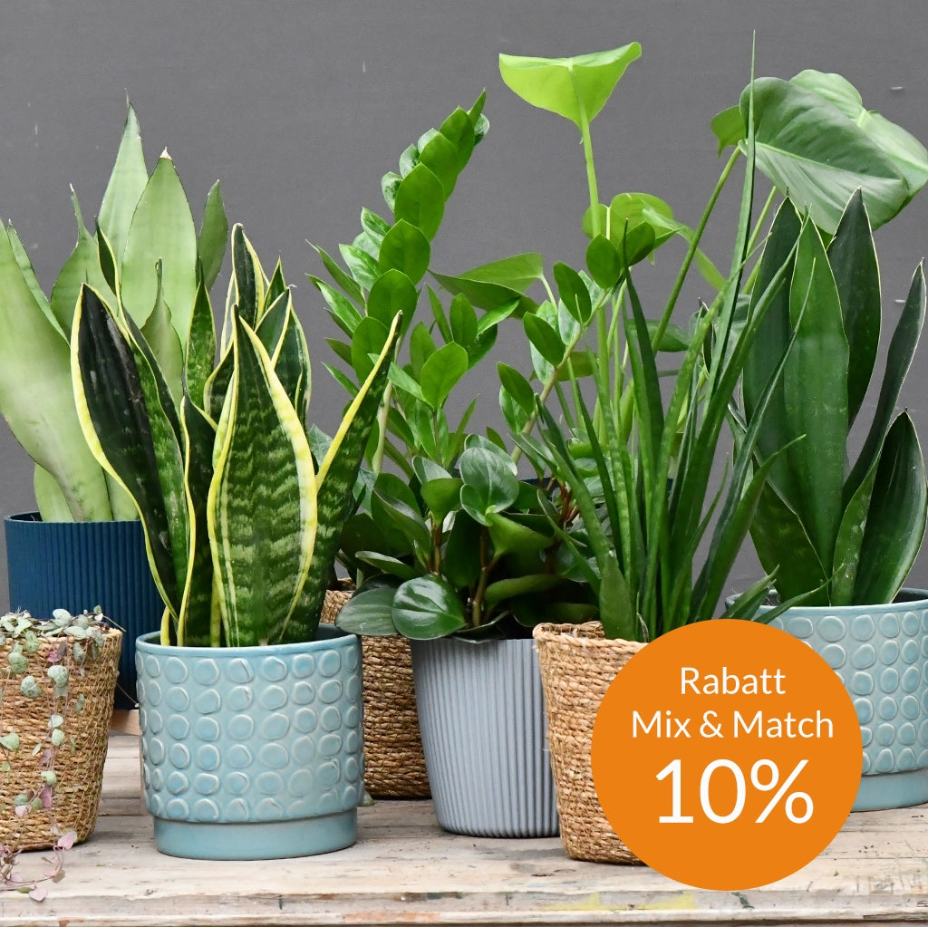 In diesem individuellen Set kannst du dir aus super pflegeleichten Pflanzen ein 4er Pflanzenset zusammenstellen und gleich passende Übertöpfe optional mit bestellen und bekommst dabei 10% Rabatt. Greife zu und dekoriere ganz nach deinem Geschmack.