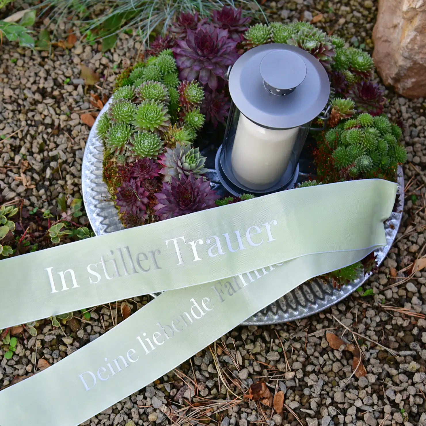 1. Schleifenband: Trauerspruch (max. 5 Wörter)